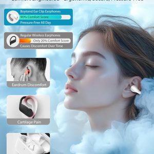 Ultra Open-Ear-Earbuds Wireless Bluetooth – Ergonomic Clip-On Headphones, Small Bone Conduction Earbuds with Waterproof Design, Perfect Running Headphones for Sports, Fitness, and Workouts